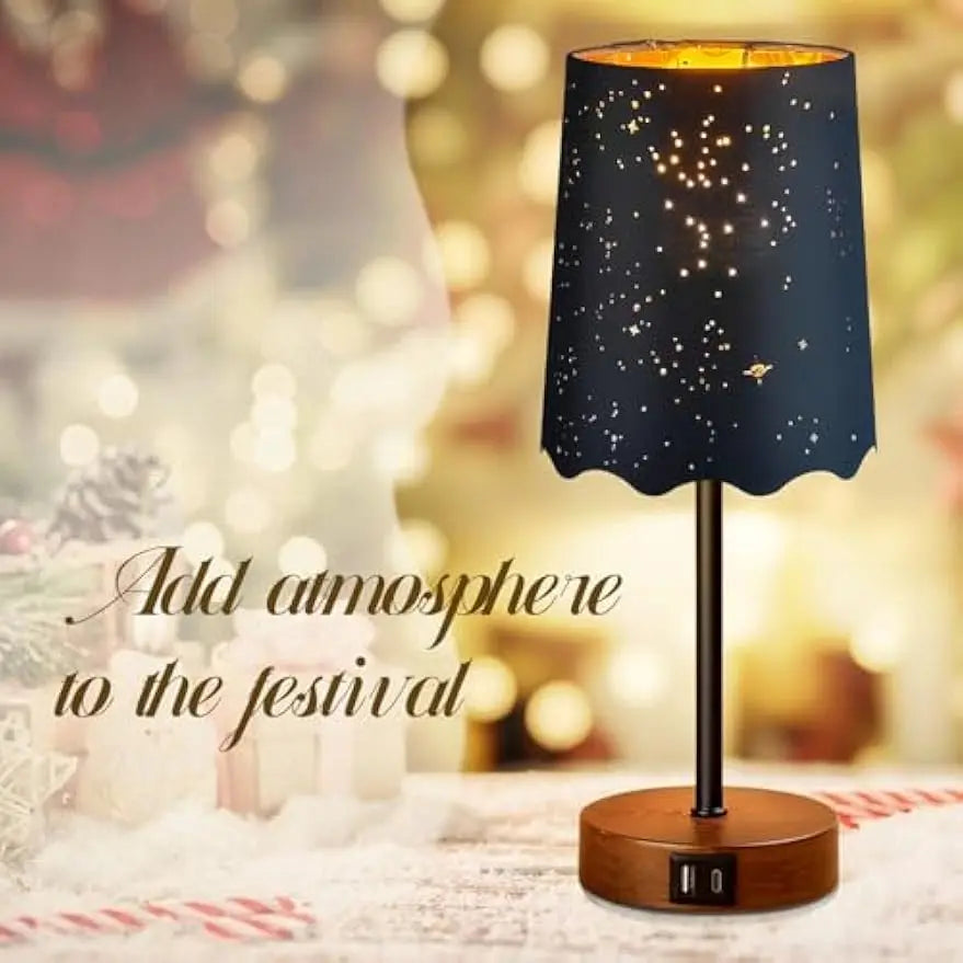 Dual Shades for Flexible Use: This small table lamp comes with two interchangeable shades – a white shade for daily use and a black starry atmosphere shade, perfect for creating a unique vibe. Whether used as a living room table lamp, bedside table lamp, or even as a kids table lamp, it's a versatile choice for any space.