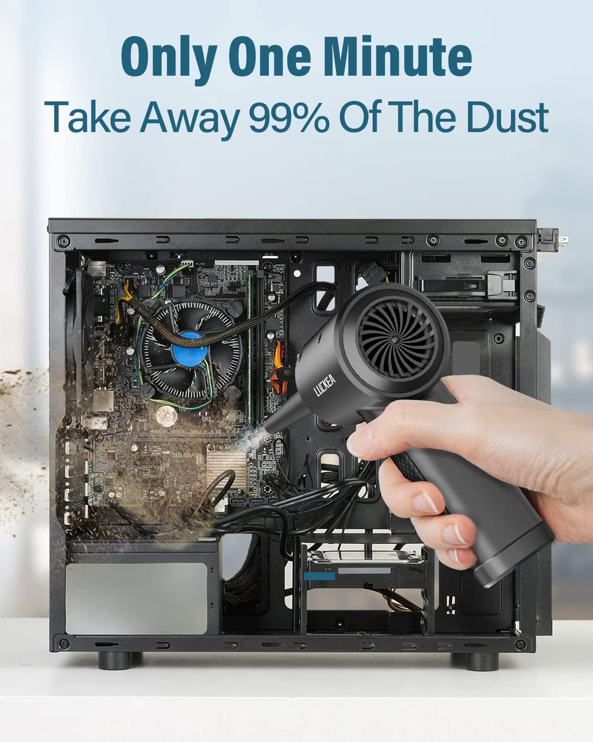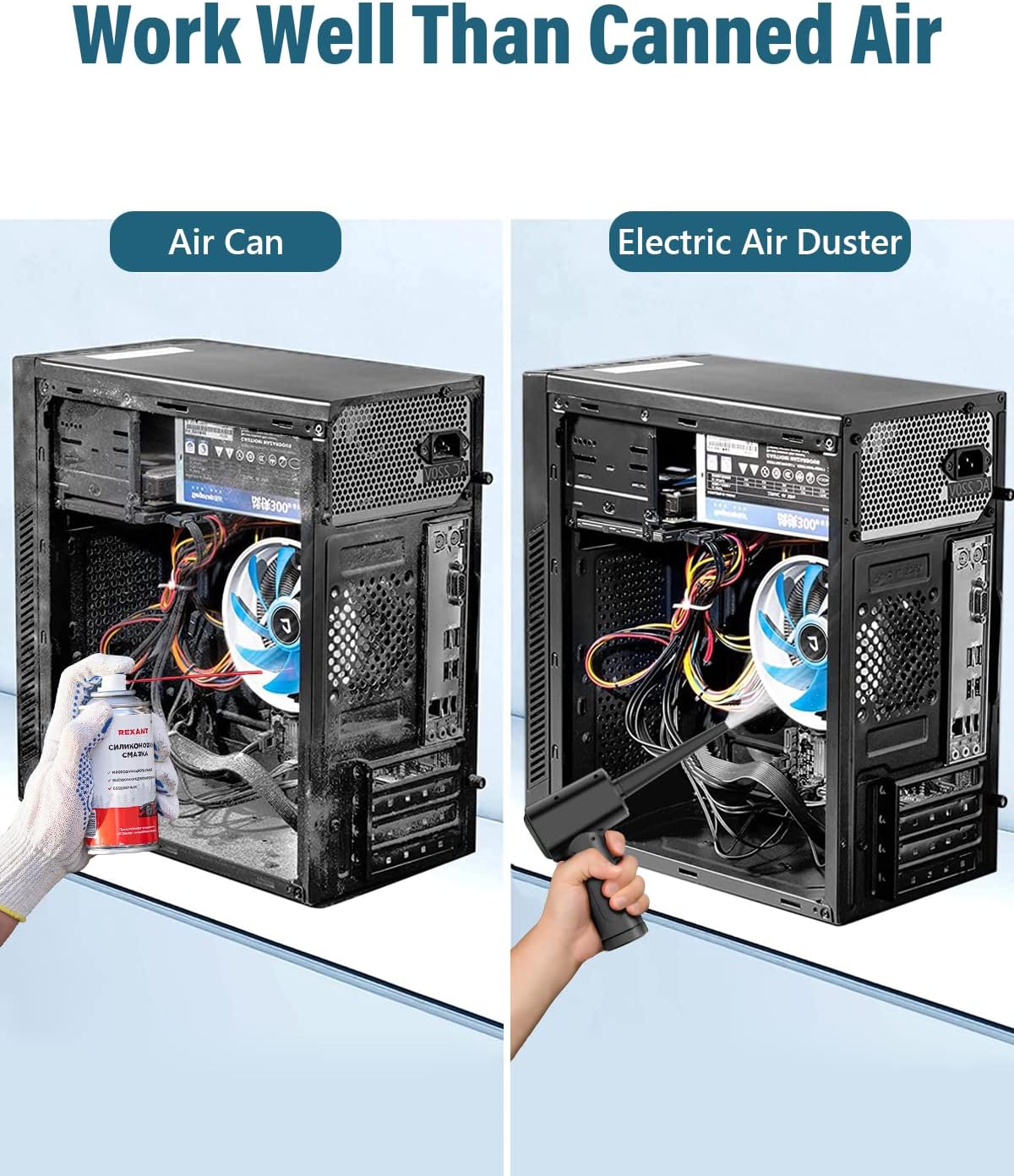 Remove 99% Dust in 1 Minute - The portable electric air duster provides a stronger and more continuous stream of air than compressed air cans, easily blowing away trapped dust and debris from PC, Laptops, Games Consoles, Tablets, and TV.