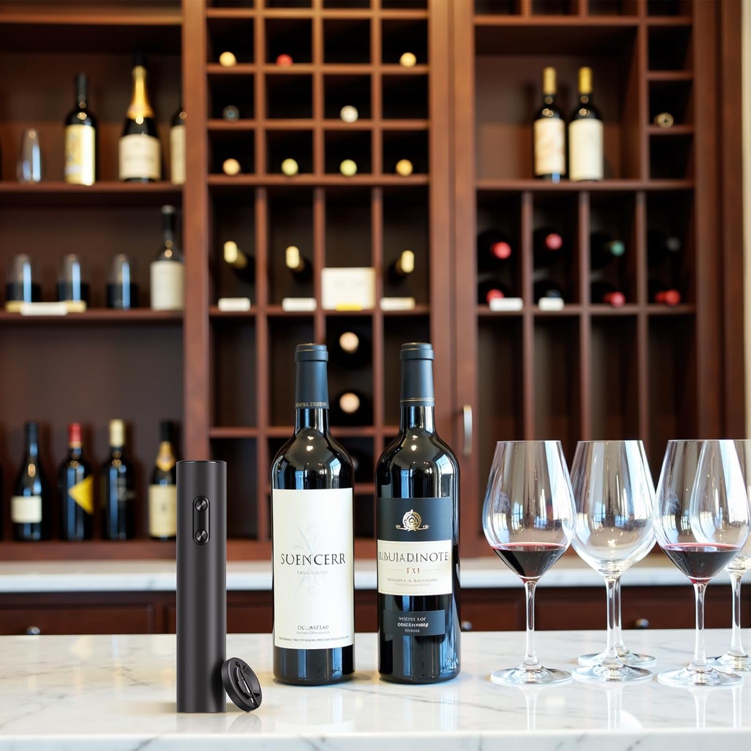 - [Compact Design for Easy Storage] This electric wine bottle opener won't take up much room on your counter. With its petite size, it can be easily stored near your wine fridge or bar setup when it's not in use