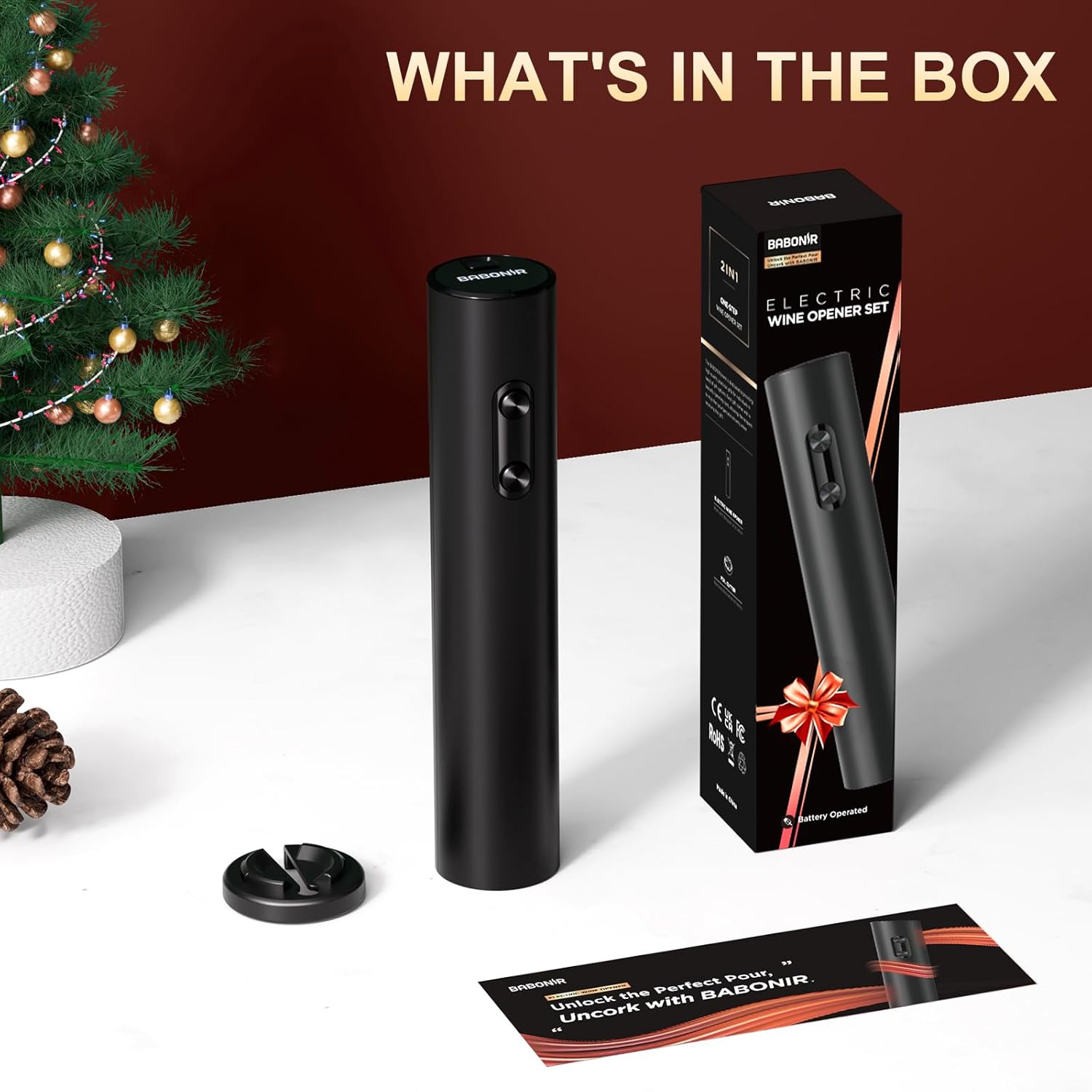 - [Modern and Efficient] BABONIR's corkscrew wine opener is the epitome of modern convenience. A quick button press, and your cork is out in a flash, preserved in perfect condition for reuse