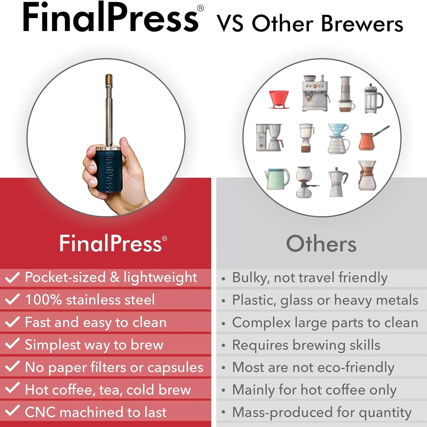 - 2️⃣ UNLOCK NEW FLAVORS – FinalPress makes delicious hot, iced, and cold brew coffee & tea, extracting more flavor than any other portable brewer.