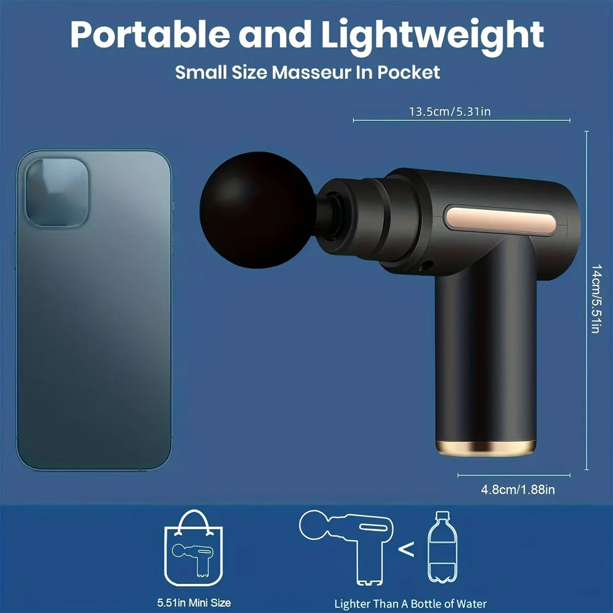 Portable Fascia Massage Gun Deep Tissue Mini Massager Body Muscle Relaxation with 4 Replaceable Massage Heads
